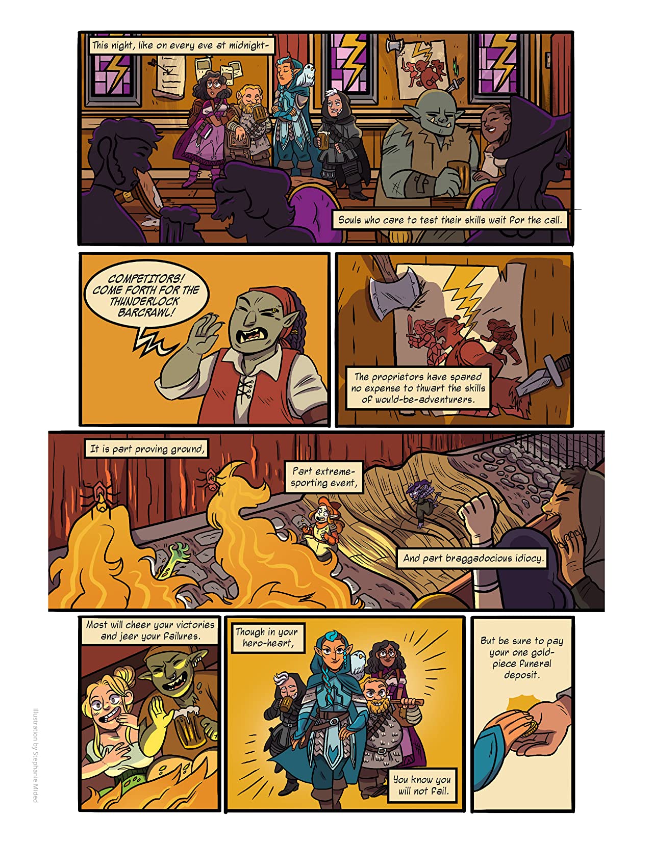 This collected edition of Rolled & Told contains all the adventures, mini-adventures, comics, and articles from issues zero to six along with extra content you couldn't get in the single issues! It provides hours of pick-up-and-play campaigns designed both for players new to tabletop role-playing and for those who have played for years. Every page is filled with beautiful illustrations, comics coinciding with adventures, and splash art from your favorite comic artists to inspire your players! Survive the dangers of "The Thunderlock Barcrawl", save goblins in "Hoist The Jolly Gobbler", and play the adventures "Mage School Beyond The Mirror", "The Case of the Brutal Brunch" and many more!