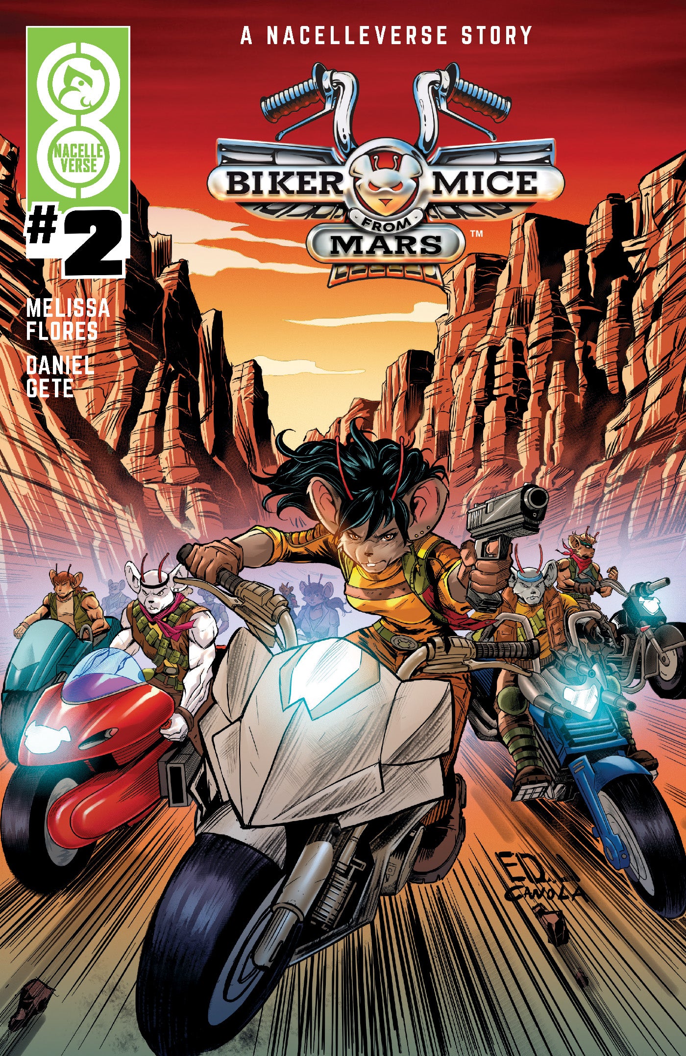 THE BIKER MICE’S FIRST-EVER ONGOING SERIES CHARGES ON! Superstar writer Melissa Flores (Power Rangers Prime) and artistic firecracker Daniel Gete (Skin Police) present all-out action for the Red Planet’s revolutionary rogues as the new band of villains responsible for Mars’ dire disaster step to the fore!